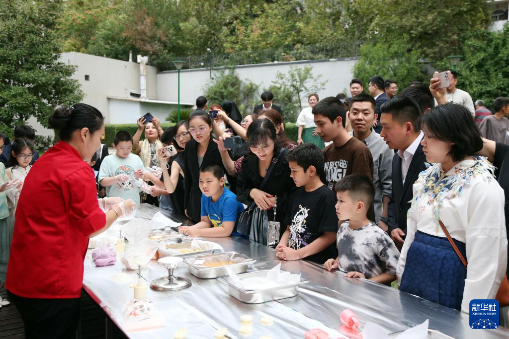 9月15日,在伊朗首都德黑兰,人们参加中秋月饼制作体验活动。新华社记者 沙达提 摄