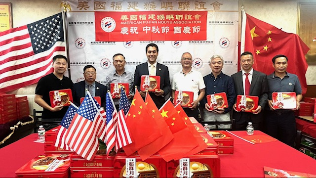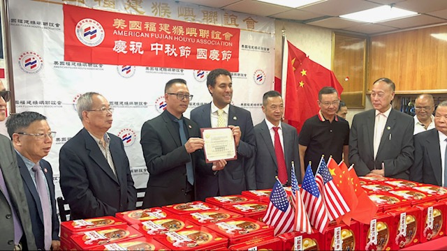 东南网9月20日讯(特约记者 纽约墨人)当地时间9月17日,美国福建猴屿联谊会(以下简称“联谊会”)在纽约举办“庆祝中秋 喜迎国庆”赠月饼活动。联谊会主席张子南、纽约市议员马泰等参加活动。