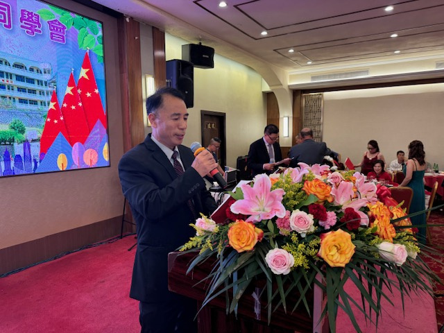 陈治德代表旅美福州琅岐中学校友会向致以热烈的祝贺。他表示,江钦官会长不负众望连任同学会会长,他一定会不辱使命,尽责履职,让同学会会务工作更上一层楼。衷心希望大家发挥自身才能,立德行善,厚待他人,争做中美民间文化交流的使者。