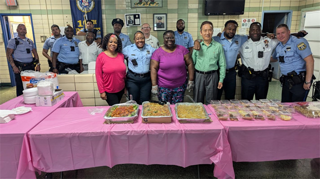 东南网9月24日讯(特约记者 林应章)当地时间9月19日,美国费城市警察局第十六分局(以下简称“十六分局”)举办慰问警察日活动,美国大费城华人餐馆协会(以下简称“协会”)和分局所属的非裔社区一起,赠送中餐和点心,慰问当天值班警员,表达社区对警员的尊重和工作上的肯定。
