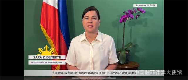 莎拉在致辞中表示,值此中华人民共和国成立75周年之际,祝贺中国取得令人惊叹的进步和成就。中国人民富有远见卓识、坚韧不拔,推动中国成为全球事务中的重要力量。菲中关系由双方历史和地理纽带塑造,两国的伙伴关系植根于主权平等及相互信任和尊重。当今世界日益紧密联系在一起,促进本地区和平稳定比以往任何时候都更加关键。菲方期待着在相互信任和尊重基础上,进一步加强与中方各领域合作,共同推动包容性发展,携手提高人民生活水平,共同创造繁荣发展的未来。