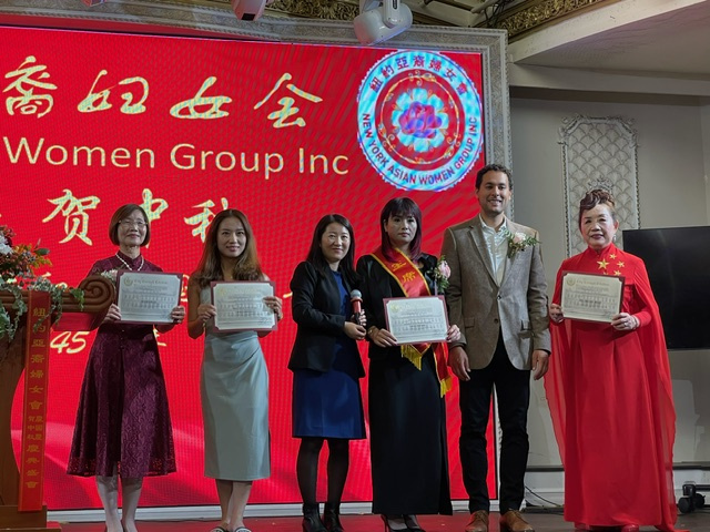 东南网10月1日讯(特约记者 纽约墨人)近日,美国纽约亚裔妇女会(以下简称“妇女会”)在纽约举行庆祝新中国成立75周年暨中美建交45周年联欢晚会。中国驻纽约总领馆领事邢玉临、荣顶,妇女会主席陈云,纽约市议员马泰,皇后区法官李昌永,美国福建同乡会主席陈恒,美国长乐公会代主席陈金雄,美国福建会馆主席陈昭银,美国福建三山会馆候任主席郑振何,美国长乐联盟总会总召集人陈书圣,美国长乐梅花联合会主席郑师飞,美国福州壶江联谊会名誉主席卓礼忠出席并致辞。晚会由项静文、林利锋主持。