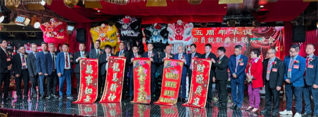 陈爱民表示,庆典期间,纽约总领馆、纽约政界、家乡省市区各级侨联侨办等纷纷发来贺电贺函,兄弟侨团、社区侨领和各界朋友送来花篮、花牌、书贴、字画等和舞狮,在此一并致以诚挚的感谢。