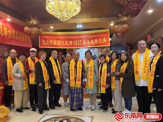 东南网10月13日讯(特约记者 白水 文/图)当地时间10月11日,美国妈祖基金会(以下简称“基金会”)在纽约举办纪念妈祖羽化升天1037周年秋祭大典。现场香火缭绕,鼓乐齐鸣,百余位华侨华人信众齐聚,共同为妈祖敬香,祈愿世界和平。