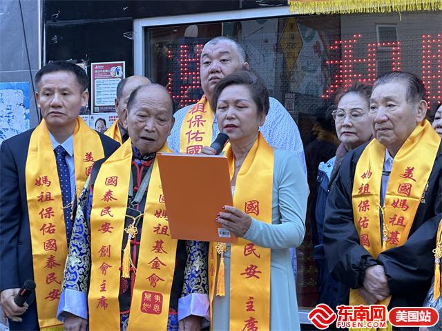 基金会董事长朱荣斌、主席黄明萍、创会主席黄升发等分别致辞。他们表示,今天是个特殊的日子,大家怀着敬仰之心,齐聚在美国妈祖庙纪念妈祖羽化升天1037周年。