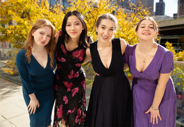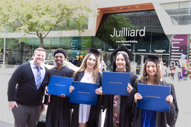朱诗雨(右二)和朱莉亚音乐学院预科班的同学们。(郑颖瑜供图)