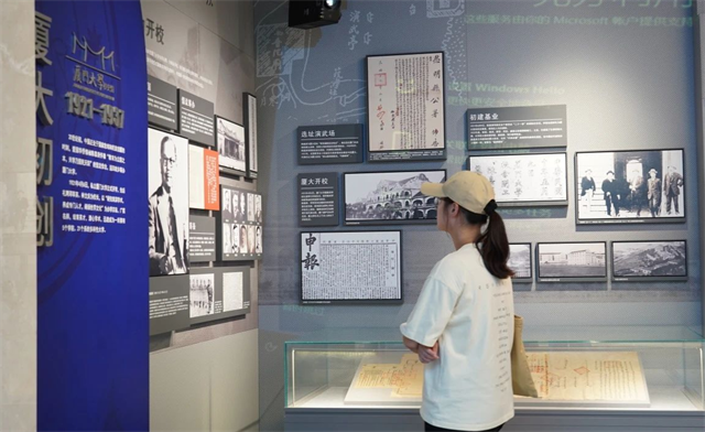在陈嘉庚创办的厦门大学,百年间,“嘉庚精神”已积淀成为厦大人世代流芳的人文基因。今年,厦门大学重新布展,焕新建设“陈嘉庚与厦门大学”纪念展馆,并于10月18日开馆,全国各地的游客慕名而来。厦门大学马克思主义学院马克思主义理论专业2024级硕士研究生李越乔正端坐其中,仔细翻阅讲解内容。她是江西人,今年考上了心仪的厦门大学,并志愿成为校史馆讲解员。她发现,最近参观厦大的人越来越多。“关于‘校主’的一切,我都想知道,也愿意讲述给每一位前来参观的游客。”李越乔说。