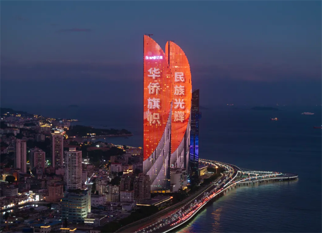 这几日,厦门多栋地标性建筑在夜幕中亮起“华侨旗帜 民族光辉”“爱国担当,团结奉献,诚毅创新”等标语,灯火璀璨间、流光溢彩中,人们深切感受到“嘉庚精神”穿越时空的魅力。曾经,陈嘉庚点亮了厦门这座城;现在,这座城为了他而点亮。