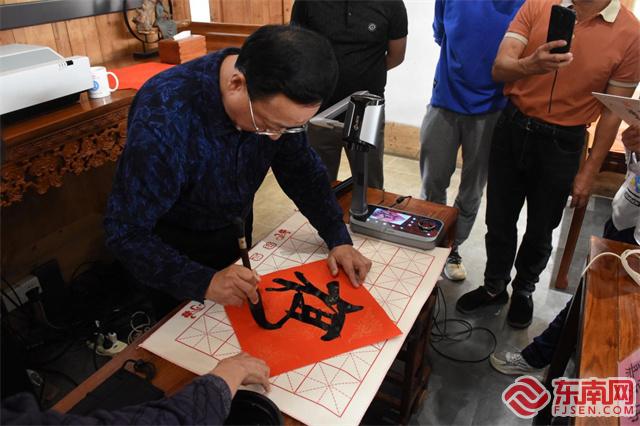 在主旨分享环节,陈朱围绕历代书法名家作品鉴赏,结合书法学习的基本方法与心得,带领读者从源远流长的汉字书法文化中感悟中华优秀传统文化的博大精深。陈朱认为,学好书法,一靠定力,二靠方法,三靠悟性,三者相互作用,相互影响,具体可以从“明确方向,继承传统”“掌握方法,循序渐进”“培养兴趣,持之以恒”三个方面做起。随后的互动环节中,陈朱对读者提出的书法作品创作、鉴赏等方面的问题进行了一一解答,让读者对书法艺术有了更深入的了解。书法展示环节中,陈朱展示了自己创作的书法作品,并现场挥毫,书写“福”字赠予读者。