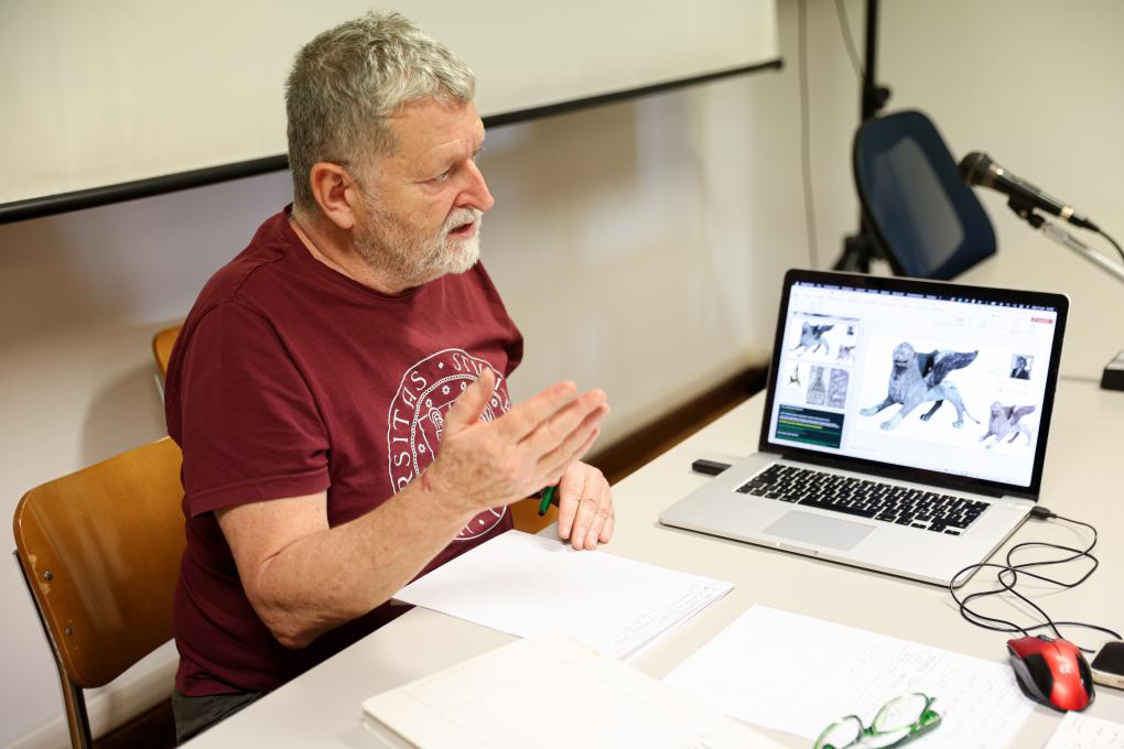 11月5日,意大利帕多瓦大学文化遗产学院教授马西莫·维达莱介绍“威尼斯之狮”研究相关情况。新华社记者 李京 摄