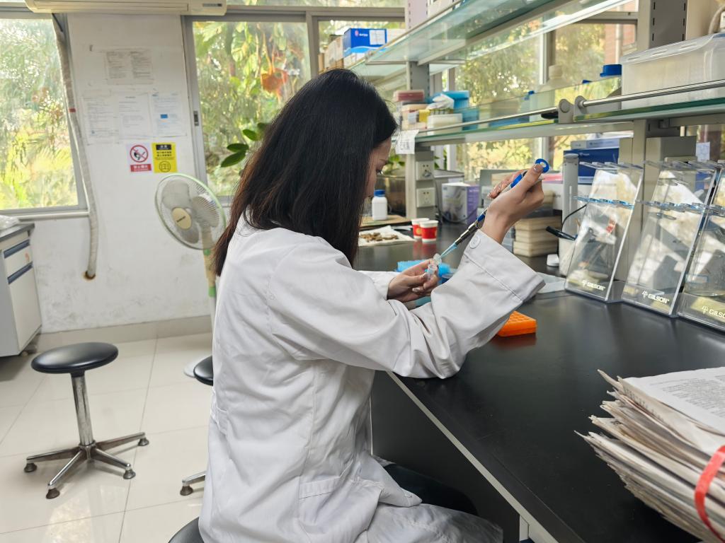 中国科学院博士后刘露在华南国家植物园实验室进行分子实验(11月11日摄)。 新华社发