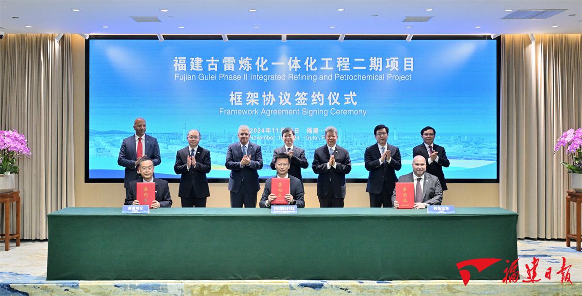 据悉,福建古雷炼化一体化工程二期项目总投资超700亿元,由福建省、中国石化、沙特阿美合资建设,是我省迄今投资规模最大的产业项目,也是中国石化迄今一次性投资最大的炼化产业项目。(记者 周琳/文 肖春道 张永定/图)