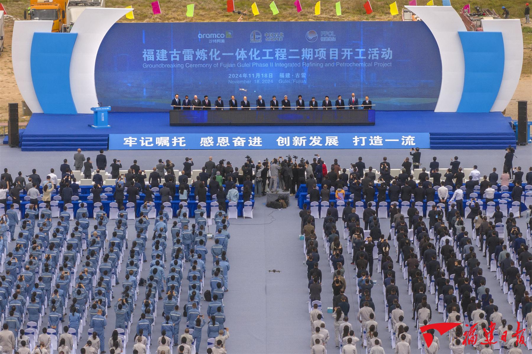 11月18日,福建古雷炼化一体化工程二期项目开工活动在漳州古雷开发区举行。省委书记、省人大常委会主任周祖翼,中国石化集团董事长马永生,沙特阿美公司下游业务总裁卡塔尼出席并讲话。省委副书记、省长赵龙出席。中国石化集团总经理赵东主持。