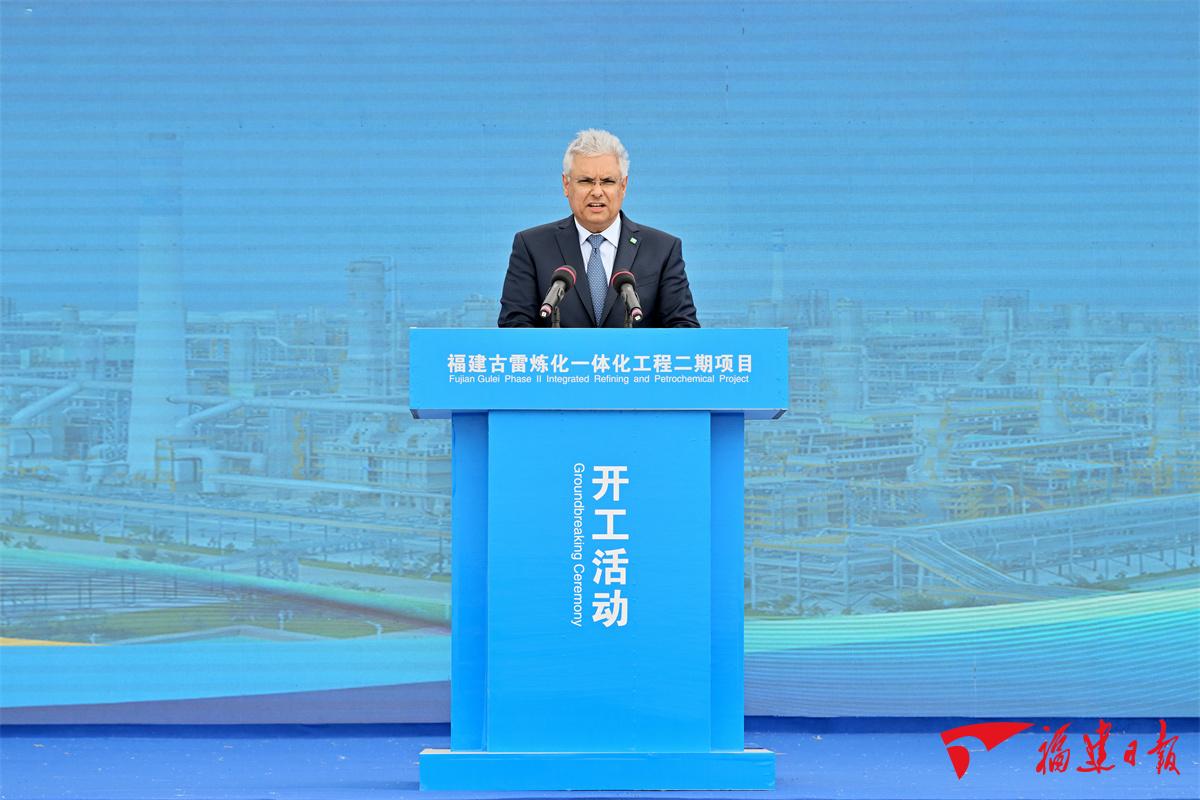周祖翼代表省委、省政府向古雷炼化一体化工程二期项目的开工表示祝贺,向长期以来关心支持项目建设的各方人士表示感谢。周祖翼指出,习近平主席高度重视中沙产业合作并作出一系列重要指示,为我们深化中沙合作注入了强大动力。福建是古代海上丝绸之路重要起点,是21世纪海上丝绸之路核心区。在石化领域,福建与中国石化、沙特阿美长期紧密合作,取得丰硕成果。今天开工项目对于落实中沙两国元首共识、深化中沙产业合作、助力沙特阿美融入中国市场、打造福建省万亿级石化产业,具有十分重要的意义。周祖翼表示,福建将牢记嘱托,认真学习贯彻习近平主席在福建考察时的重要讲话精神,深度融入高质量共建“一带一路”,巩固拓展国内国际双循环的重要节点、重要通道功能。我们愿与中国石化、沙特阿美一道,深耕石化产业,加强精诚合作,携手推进项目建设、提升园区建设、壮大产业集群,不断续写互利共赢新篇章。我们将打造一流营商环境,精心做好服务保障,让大家在福建放心投资、顺心发展、安心生活。