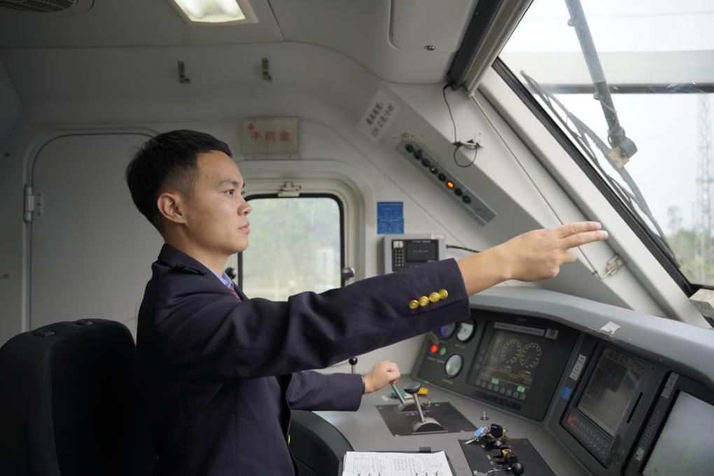 11月15日,李峰正在驾驶中欧班列。新华社发
