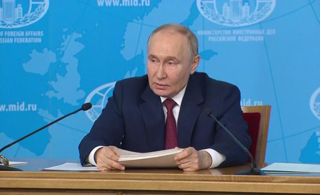 6月14日,在俄罗斯首都莫斯科,俄罗斯总统普京在俄外交部发表讲话(视频截图)。新华社发