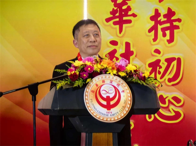 东南网11月21日讯(特约记者 洪宾宾)当地时间11月17日,菲律宾菲华联谊总会(以下简称“联谊总会”)成立五十周年庆典暨新届理监事会、青年团及总商会职员就职典礼在巴兰玉计市举行,蔡明丰荣任新届理事长。中国驻菲律宾大使黄溪连担任监誓人,菲华友好团体代表、嘉宾等参加典礼活动。