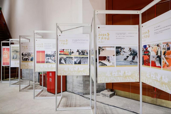 沈绍安漆艺作为一个具有深厚历史底蕴的品牌,传承了古老的漆艺技法,历经数代人的努力与创新。其以精湛的工艺、高品质的材料和独特的艺术风格著称。《永恒中轴》漆画采用的是具有八千年历史的非遗大漆技艺,制作的团队是传承了 200 多年历史的老字号——沈绍安漆艺。清乾隆年间,福州漆艺匠人沈绍安恢复创制“脱胎”技法,从1900年起连续三次荣获世界博览会金奖,翻开了中国漆艺从民族走向世界的新篇章。如今,沈绍安漆艺已传承到九代,在新一代九零后主理人林志东和来自台湾的知名漆艺家黄宝贤老师以及高校漆画专业毕业的年轻艺术家们的努力下,大胆创新,不断推出新的作品,更加年轻化和国际化。