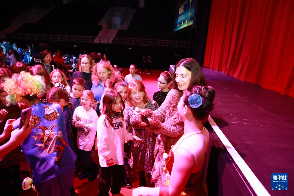 11月22日,在希腊雅典举行的第二届中希国际戏剧节上,观众与广州杂技团演员合影。新华社发(塔基斯·利昂蒂迪斯摄)