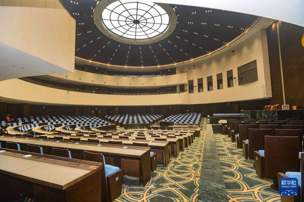 这是11月19日在喀麦隆首都雅温得拍摄的中国援喀国民议会大楼半圆会议厅内景。新华社发(科普索 摄)