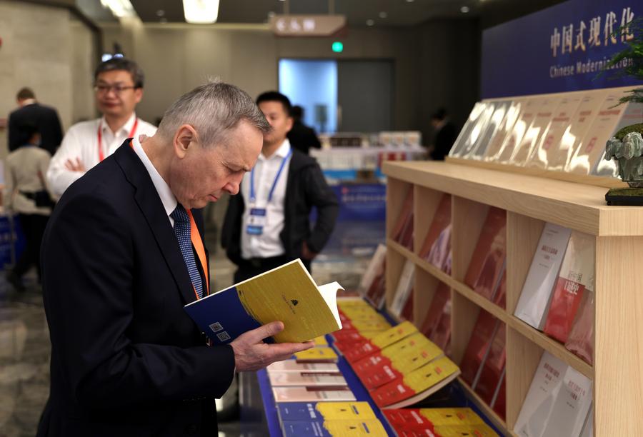 12月3日,2024年“读懂中国”国际会议与会嘉宾在会场阅读书籍。新华社记者 卢汉欣 摄