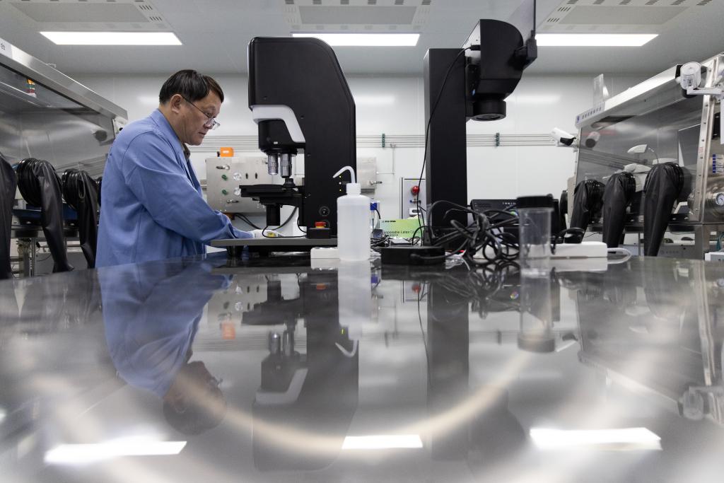 9月24日,中国科学院国家天文台研究员、嫦娥六号任务副总设计师李春来在月球样品实验室处理嫦娥六号月球样品。新华社记者 金立旺 摄