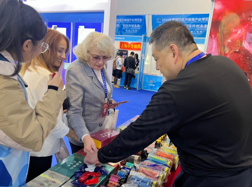 大会期间,2024长春国际医药健康产业博览会同步开展,参展人数超过10万人次。众多厂商带着智能诊疗设备、精准中药调配系统等创新产品亮相展区,彰显中医药现代化的最新成果,吸引了不少海外采购商进行商务对接。