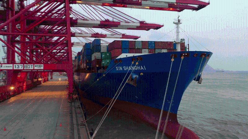 12月18日,靠泊上海洋山港的“新上海”轮。新华社记者 狄春 摄