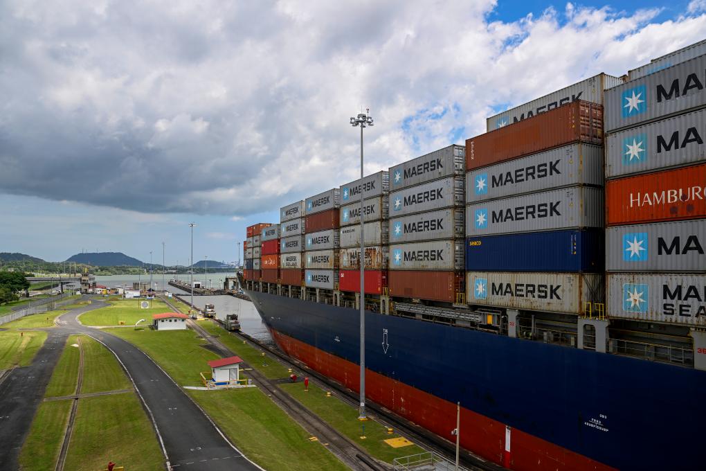 8月28日,在巴拿马首都巴拿马城附近,一艘货轮通过巴拿马运河的米拉弗洛雷斯船闸准备驶入太平洋。新华社记者 李木子 摄