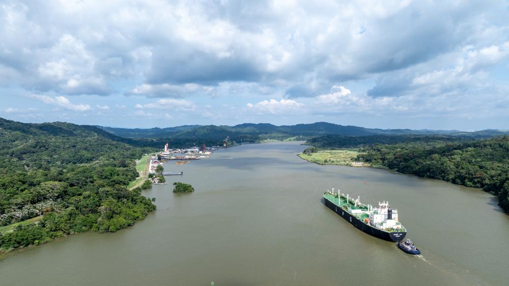 8月28日,在巴拿马首都巴拿马城附近,船只在巴拿马运河上航行。新华社发