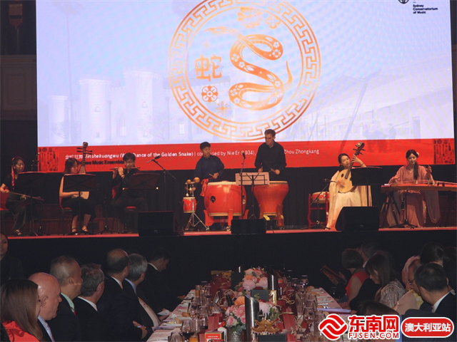 悉尼音乐学院中国乐团带来了精彩的乐器表演,《金蛇狂舞》《盛世国乐》《龙船调》三首经典曲目,让观众沉浸在中国民族音乐的喜庆氛围中。