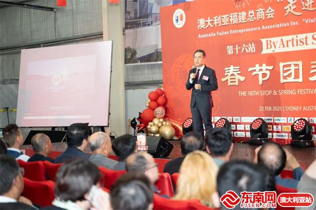 东南网2月25日讯(特约记者 兰木 橙子 吴雷蒙)当地时间2月22日,澳大利亚福建总商会(以下简称“总商会”)“走进会企”系列活动第十六站暨春节团拜会在悉尼举行。中国驻悉尼总领事王愚及夫人张红、负责经商事务的参赞衔领事叶威、领事胡阳、副领事张明子,福建总商会会长林文灯博士,执行常务副会长严贤光、郑高俊,秘书长池声强,常务副会长林星,史卓非(Strathfield)市副市长蔡定杰议员,加拿大湾副市长安东尼·巴祖尼,澳大利亚中国东北总商会会长姜建新,澳大利亚江苏总会会长韦祖良,新南威尔士州建筑协会会长刘浩,澳大利亚宋庆龄基金会主席陈星惠等来自澳洲政商侨界及会员单位代表等400余名各界嘉宾出席活动。