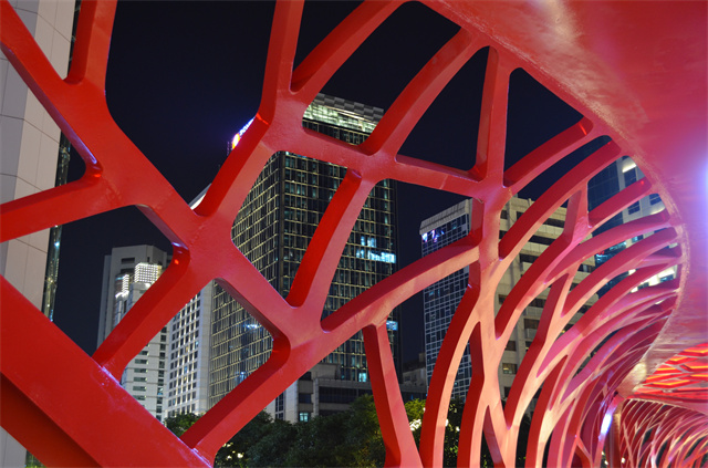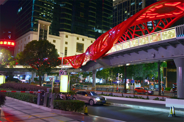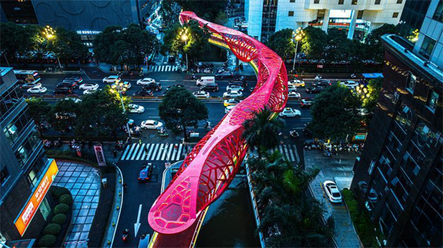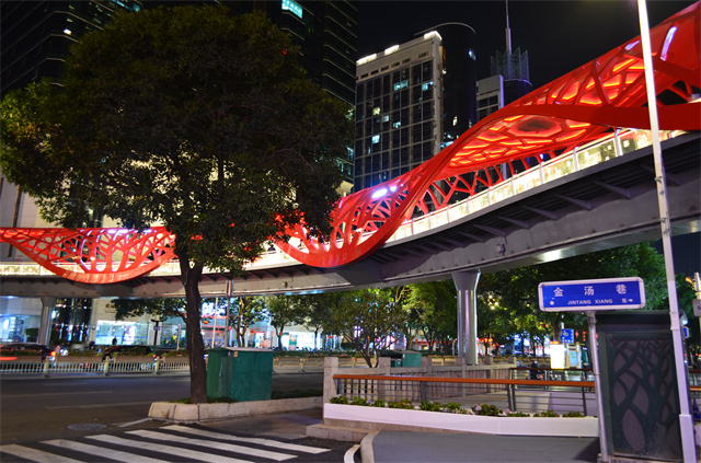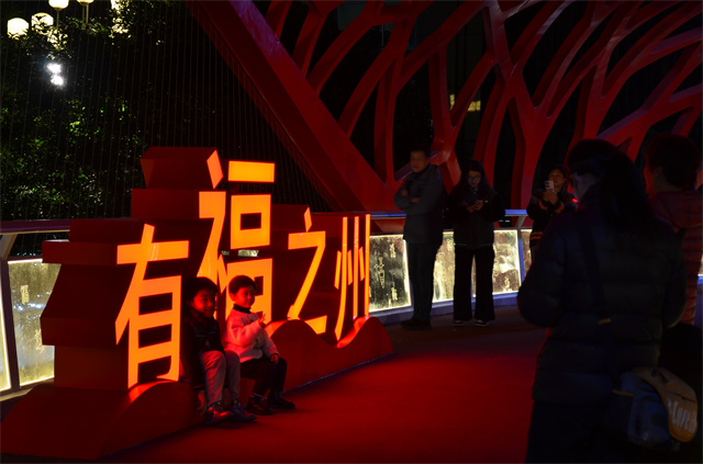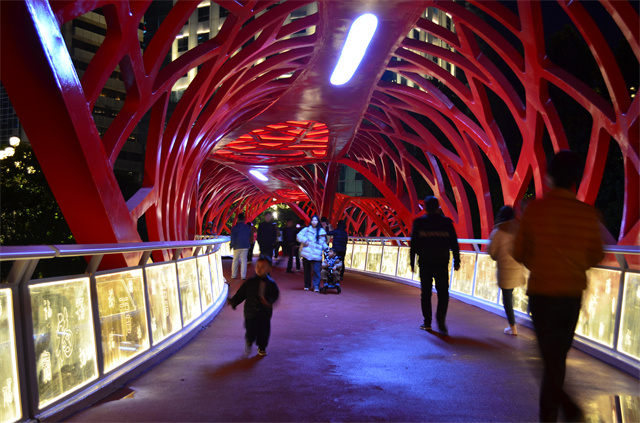 Baifu Bridge is the first elevated scenic walkway in the central urban area of Fujian Province. The most striking feature of the entire bridge is its exquisitely designed canopy, known as the "Hundred Blessings Crown," which is predominantly colored in Chinese red. The sections are adorned with panels inscribed with the character "Fu (blessing)" in various calligraphic styles. These diverse representations of Blessing bring an abundance of good fortune to everyone in the new year!