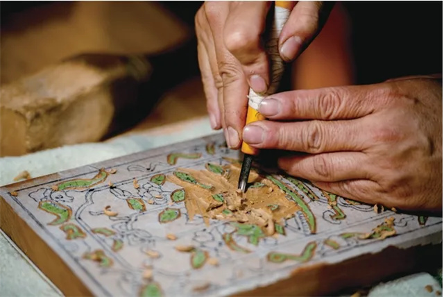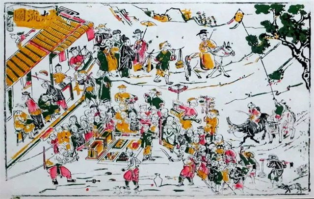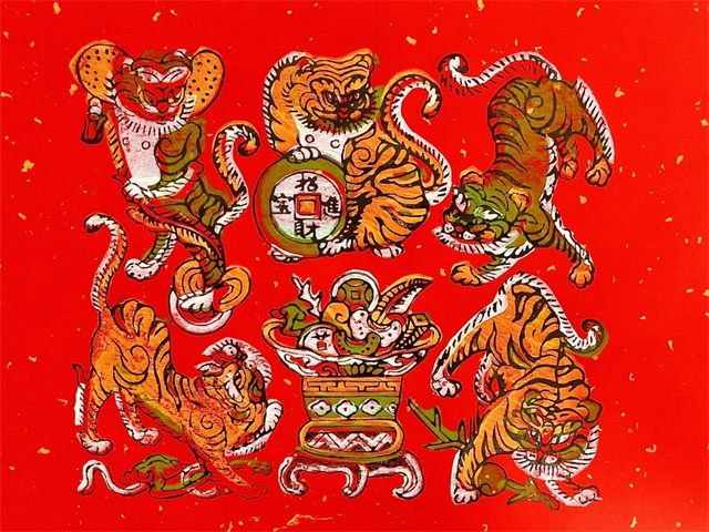 Zhangzhou woodblock New Year paintings originated in the Song Dynasty and flourished during the Ming and Qing Dynasties, representing a unique traditional folk art form from Zhangzhou, Fujian. The main themes include warding off evil, praying for good fortune, historical opera stories, and decorative patterns. Among Zhangzhou New Year paintings, door paintings are the most common, which are further categorized into "Cushen (coarse deity)", "Youshen (fine deity)" and other types. "Cushen" refers to door paintings printed on bright red or vermilion paper, while "Youshen" refers to those printed directly on natural-colored paper with light red hues manually overprinted on the figures and backgrounds.