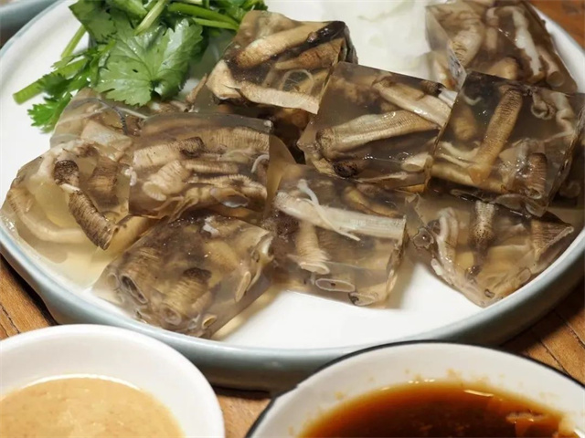 Tusun Jelly has a crystal-clear, jelly-like appearance, but inside hides a starworm from the coastal mudflats of Southern Fujian! Old fishermen call it "the ginseng in the bottom of the sea," packed with collagen that sets into a wobbly jelly when boiled. Take a bite—cool, bouncy, and dipped in garlic soy sauce, its umami explodes in your mouth!Once only made by grandmothers in fishing villages, it’s now a street food superstar. Visitors may hesitate, while locals just smile: "Scared? One bite and you’re hooked!"
