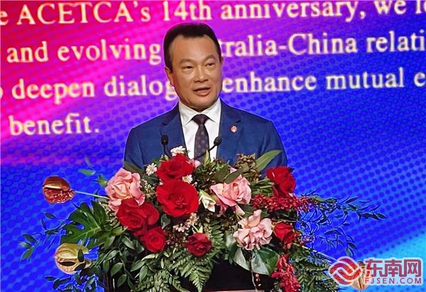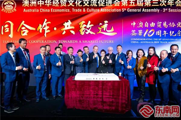 东南网6月28日讯(特约记者 一禾)当地时间6月27日,澳洲中华经贸文化交流促进会(以下简称“华贸会”)在悉尼隆重举办第五届第三次年会(以下简称“年会”)。本次年会以“同合作·共致远”和纪念中澳自由贸易协定(以下简称“自贸协定”)签署十周年为主题,回顾中澳合作成果,展望未来发展。中国驻悉尼总领事王愚、澳大利亚前总理阿博特(Tony Abbott)、澳大利亚前贸易与投资部长安德鲁·罗布(Andrew Robb)、澳大利亚悉尼市长摩尔(Clover Moore)的代表议员郭耀文等澳中政界、工商界、学术界及主流社团的三百多位嘉宾出席年会活动。