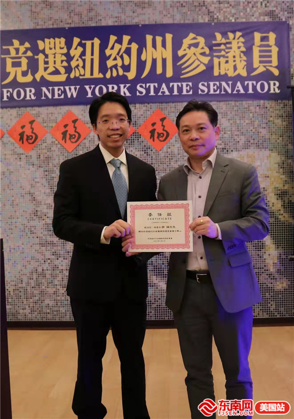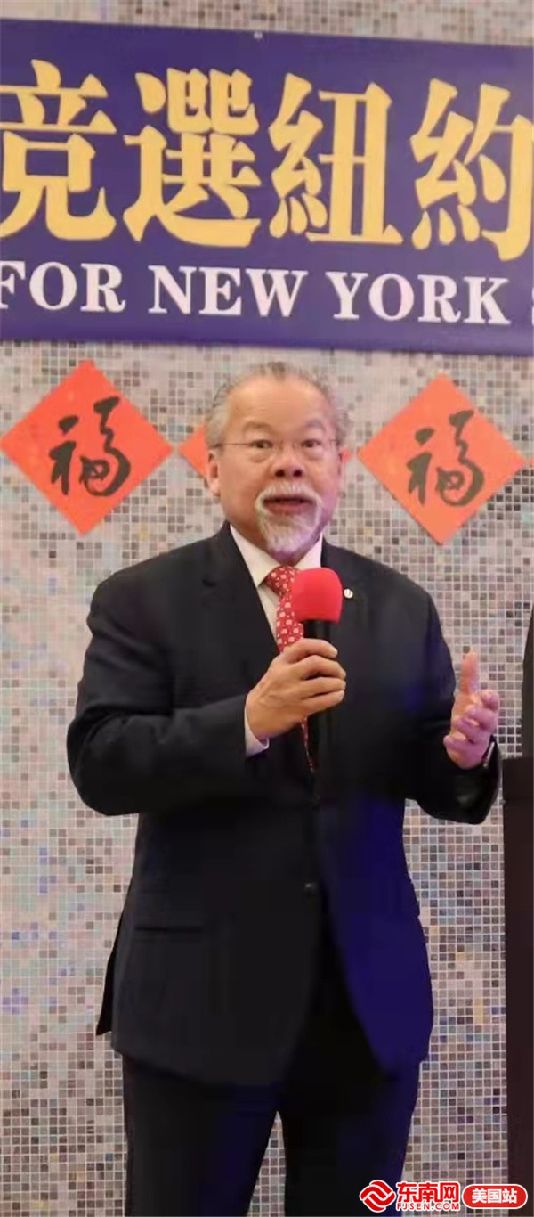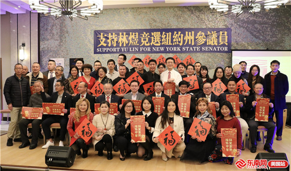 美国波士顿福建总商会会长谢锋向到场嘉宾拜年,祝大家虎年大吉、阖家幸福!他呼吁全美华人支持闽籍青年才俊林煜参选纽约州参议员,全力推进华人参政议政。他说:“今天是农历正月初九,大家在此相聚,团结全美华人力量,一起来支持林煜,望能进一步推进华人参政事业。”