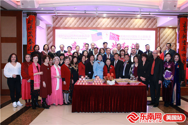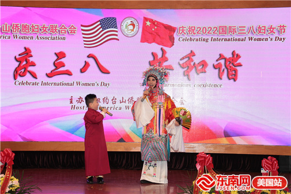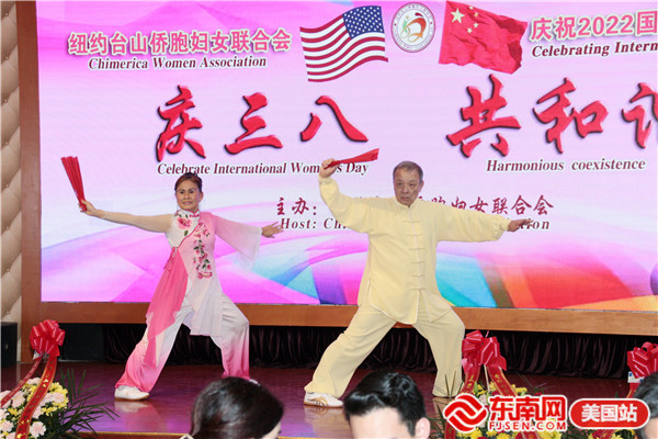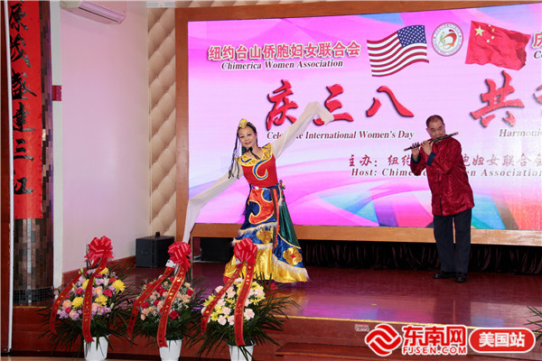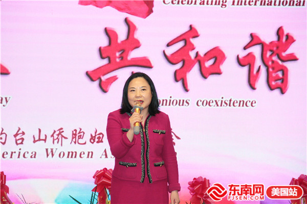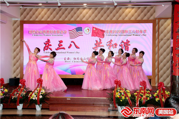 东南网美国3月9日讯(本网特约记者 陈伟彬 梅子华)当地时间3月6日,美国纽约台山侨胞妇女联合会“庆三八 共和谐”大型晚会在布碌仑金皇廷大酒楼举行。200多人出席活动。