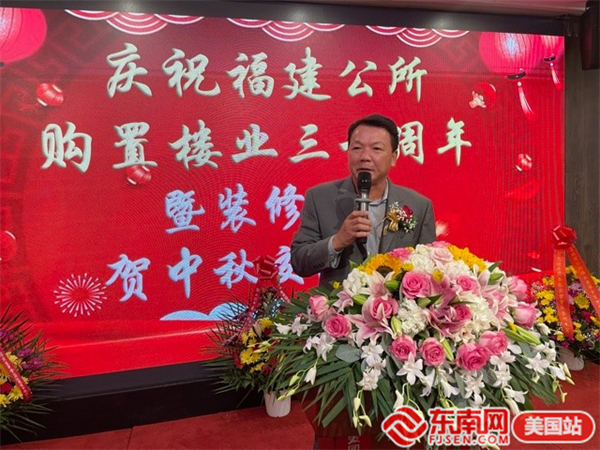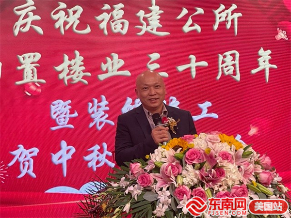 美国长乐公会主席卢建顺致辞,他代表美国长乐公会全体同仁向美国福建公所表示最热烈的祝贺。美国福建公所自1990年成立以来,在历届主席带领下,始终秉承创会宗旨,服务乡亲,团结各兄弟社团,积极参与社区各项活动,大力支持华人参政议政,为促进中美两国民间友好往来作出贡献。