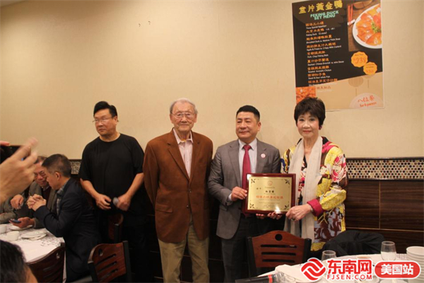 活动现场,林建新向林洁辉颁发了首届全美华人合作峰会的“领导力终身成就奖”。