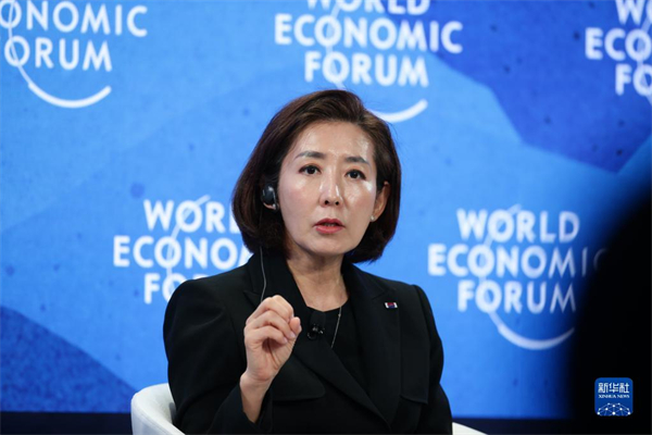 5月26日,在瑞士达沃斯,韩国总统特使罗卿瑗出席世界经济论坛2022年年会一个分论坛。