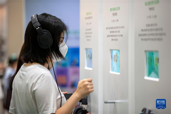 6月1日,人们在韩国首尔国际书展上试听有声书。