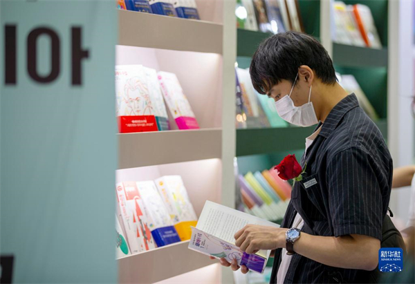 6月1日,一名男子在韩国首尔国际书展上参观。