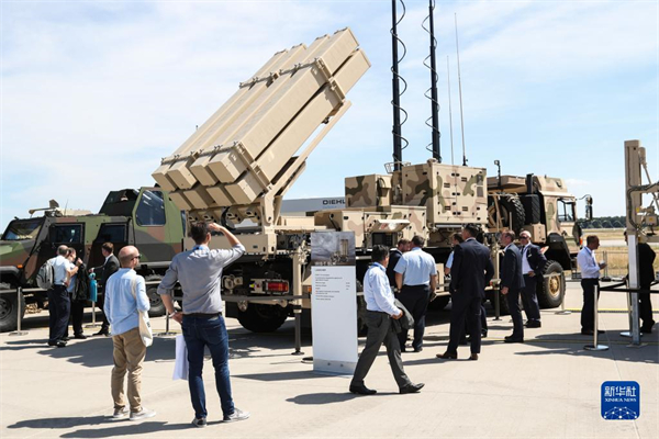 6月22日,在德国首都柏林南郊,人们观看展出的IRIS-T SLM防空系统。