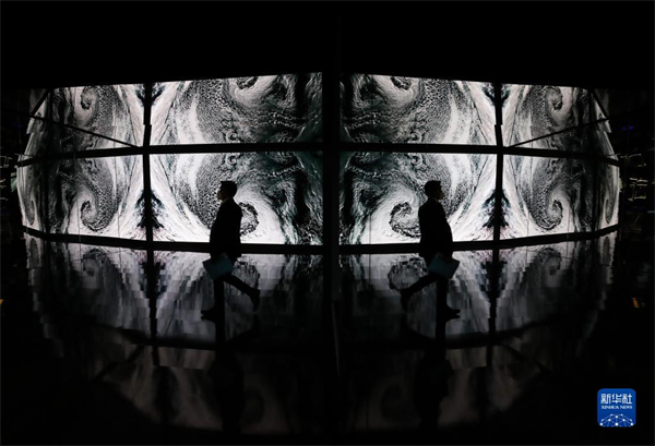 6月22日,在德国首都柏林南郊,一名男子在太空主题展厅内穿行。