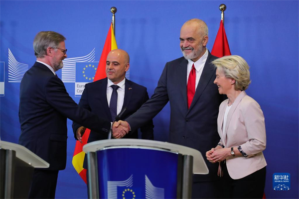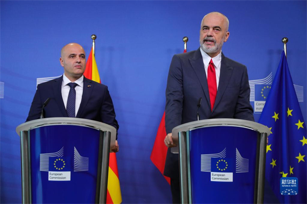 在推迟了近两年后,欧盟19日正式与阿尔巴尼亚和北马其顿开启入盟谈判。当天,欧盟与阿尔巴尼亚和北马其顿在布鲁塞尔召开政府间会议。欧盟委员会主席冯德莱恩、欧盟轮值主席国捷克总理菲亚拉、阿尔巴尼亚总理拉马和北马其顿总理科瓦切夫斯基在会前举行了联合记者会。