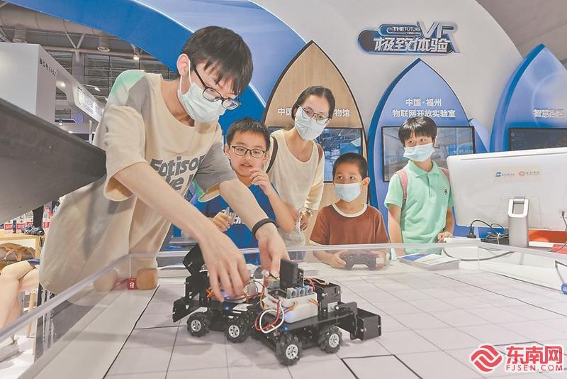 昨日,小朋友在数字展区体验遥控数字赛车。福建日报记者 吴鹏 摄