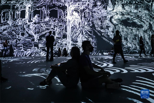 7月28日,游客在巴西里约热内卢参观梵高作品沉浸式8K超高清艺术展。