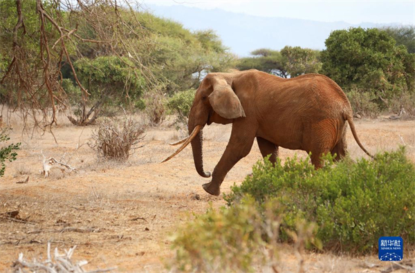 这是7月28日在肯尼亚察沃国家公园拍摄的大象。