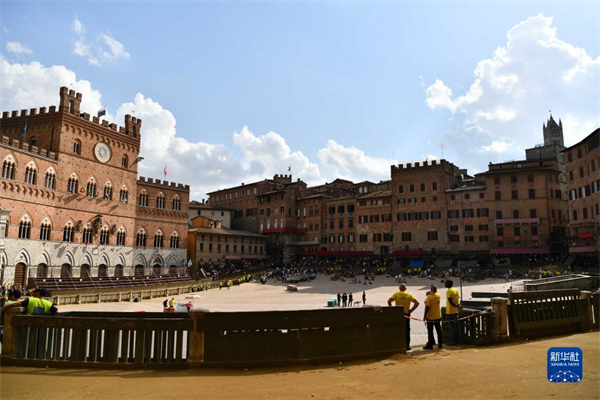 8月15日,意大利锡耶纳田野广场准备进行赛马节。